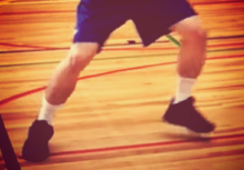 いきなり左横方向に大きく踏み出すんじゃないんだ。そのようにやると、上半身も一緒に左に流れ、右足が伸びて右にウエイトが乗らない。結果、右足(トレイルフット)による蹴りの力を十分生かせなくなる。けっこう難しい、理解してもらえるかなあ?もちろん、リードフットで引っぱりトレイルフットで強く蹴るのだが、スライドの出だし1歩目では、いきなり横移動じゃない。スライドという言葉のイメージから、滑らせる動作を描きやすいが、リードフット(この例では左足)を上方向にほんの少し持ち上げ(1~2cm)、その動作に遅れることなく、トレイルフット(この例では右足)で床を強く蹴る。それが重要なんだ。その持ち上げる動作と蹴りには、ほとんど時間差がない。また、少し持ち上げる動作と横移動の動作には流れるようなスムーズさが必要。十分に練習しスライドの速い選手でも、このレベルまで詰めると×ということかなり多い。困難ながら、このようにすれば、パワーポジションも崩れず、強い蹴りと安定した姿勢が得られる。育成年代の多くは、足を左・右・左・右と順送りにするスライドをやるだろう。それを「Stepスライド」という。スライドの1つのやり方だね。だが、上で説明したようにスライドすると低空を一気に跳ぶような感じになり、足が着地する際、左右の時間差がとても小さくなる。つまりスライドのスピードが増す。スライドステップには、まだ補足したいこともあるが、本日最も伝えたかったことは書けたかなあ。
