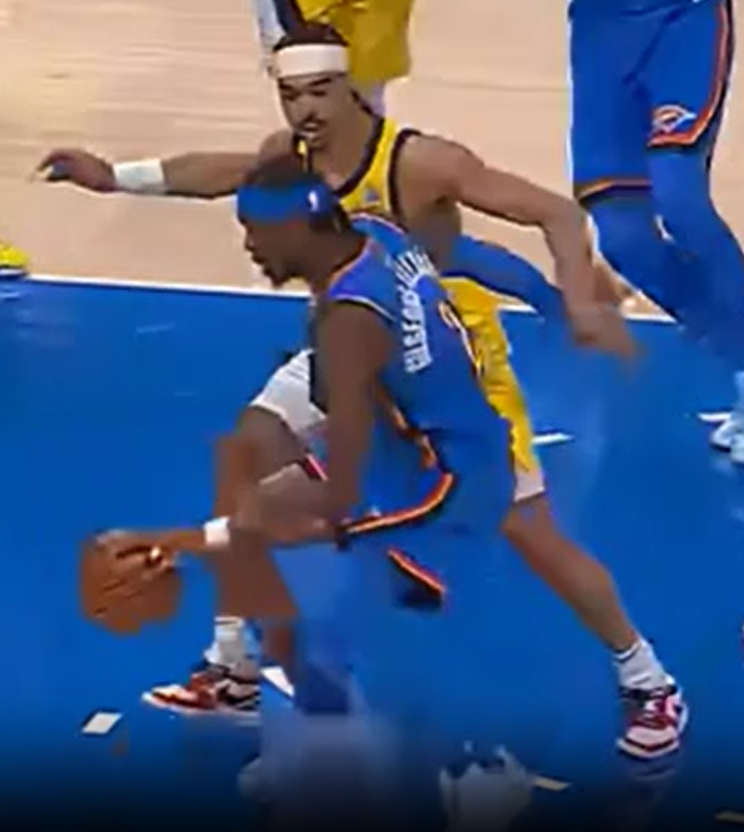 R7.10.30追記 昨年のプレイオフ場面の1つだ。MVPシェイを守りきったネムハード、ゼロ距離での激しいタイトDEFゆえ、いろんなステップが混じっている。その中から本原稿に関係深いシーンを2枚取りだした。先に掲載した5枚の写真と比較しながら見るといい。全体動画 https://saschool-blog.com/?p=7980