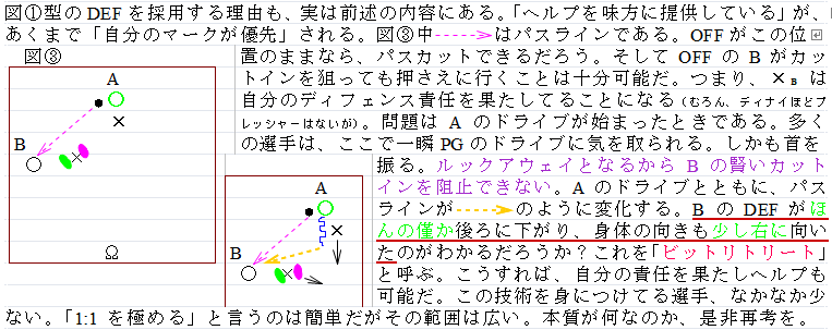 原稿を要約すると2点。「個人DEF力を徹底して磨け、まだ甘すぎる」「チームDEFの考え方はいろいろだが、全てに都合いいものなどナイ」ということ。解説内容は専門性が高くなるが、その2点を念頭に置き読み進めてほしい。上級者や経験者には興味深いものとなろう。