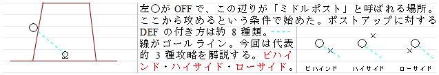 攻め方①~⑥は、すべて左右のターン2つがあり、どっち側でもやれないとダメ。より効果的なのはどっち側か、DEF次第で変わるから、意識して練習・試合で実践しよう。