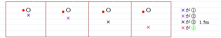 1m、1.5m、2mと具体的数値を書いたが、数値として明確なのは「1.5m」だけ、これはルールの文言に書かれている。腕1本分といっても、身体のサイズやリーチの違いでかなりの差が出る。それを考慮し概ね1mとした。2mについても同様で、身長140cmと190cmでは感じ方に大差が出よう。160~170cm程度のサイズをイメージした数値である。これ以降の文章を読む際、OFF.DEFのサイズに合わせ、各自参考としてほしい。