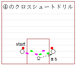 例 右から2歩ステップし右シュート→Rebして左へ走る→左から2歩ステップし左シュート→Rebして右へ走る→反復する