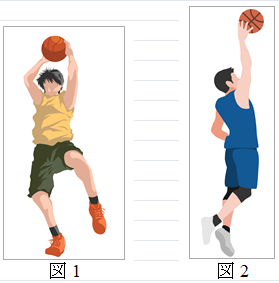 右の図1を見てほしい。これが両手でのリバウンド。既にボールを引きつけ始めてるので、少し腕が曲がり、ボール位置はやや下がってる。図2はほぼ最高点でボールを捉えてるので、条件が一緒ではないが、それにしても、明らかに片手リバウンド(ワンハンドReb)がより高い位置でボールを捉えられると、分かるだろう。そしてもう一つ、ワンハンドには優位性がある。それは何か?ボウスハンドの場合には、身体の向きがボールに対し、ほぼ正面を向く。両手同時につかみに行くので、まあ、当然だ。だが、ワンハンドではその制約がない。正面はもちろん、左右にズレていても、腕をニュッと伸ばしボールを捉えることができる。つまり、相手リバウンダーの真上にあるボールでさえ、制空権を得ることが可能なんだ。両手だと、相手シリンダーへ突撃、ファウルにもなりやすい。