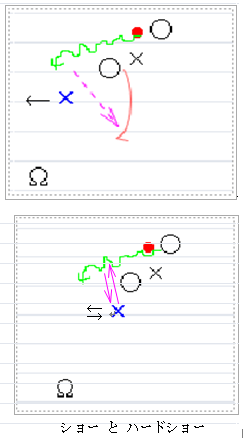 「ショー」では、×がほぼ真横方向へ動いた。それをもっと